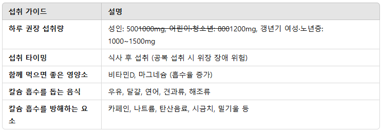 • 성장기 어린이 및 청소년: 800~1200mg