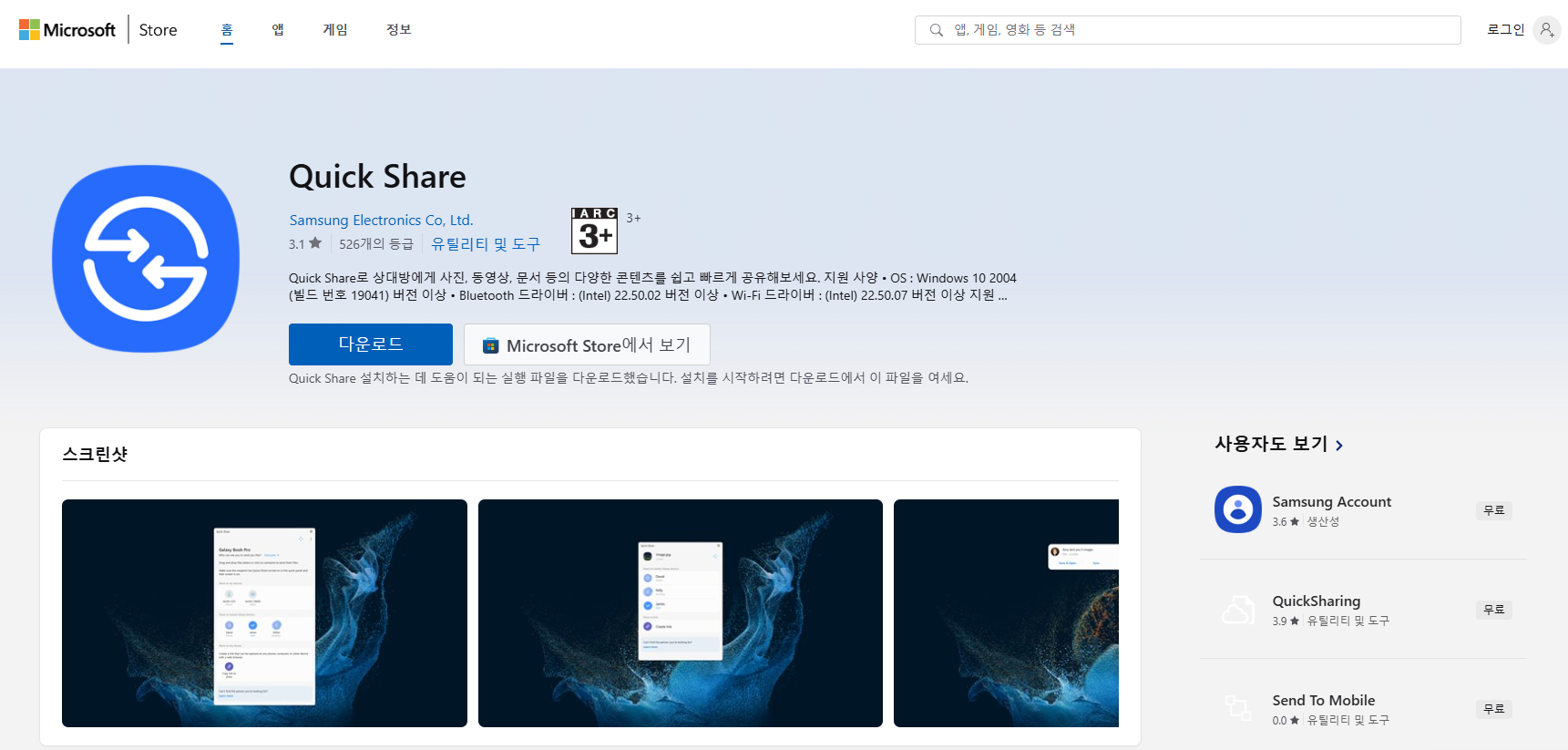 - [Microsoft Store]에서 Quick Share for Windows 설치