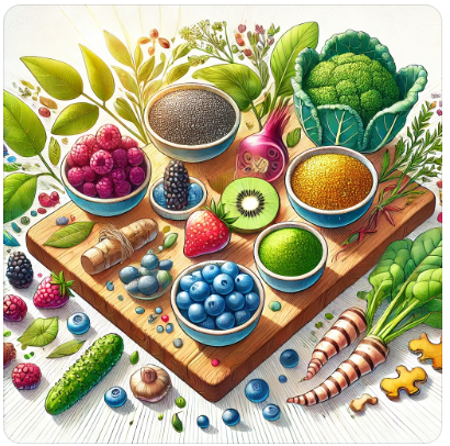 항노화 식단은 단순히 주름을 막는 것이 아닌, 세포의 손상을 줄이고 만성 질환의 위험을 낮추는 데 초점을 둡니다. 핵심은 항산화 영양소를 충분히 섭취하고, 당화(Glycation)를 방지하는 것입니다.