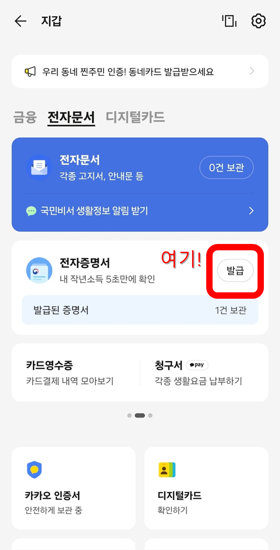 카카오톡 내 '전자문서지갑'은 공공기관, 정부, 지자체, 공공기업에서 발급하는 다양한 문서를 모바일로 안전하게 저장하고 관리할 수 있는 기능입니다.
