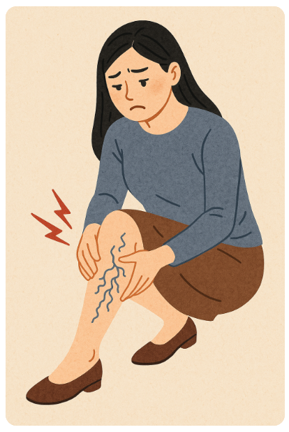 밤에 쥐가 나거나, 무거운 느낌, 가려움 등의 증상이 있다면 하지정맥류 초기일 수 있습니다.