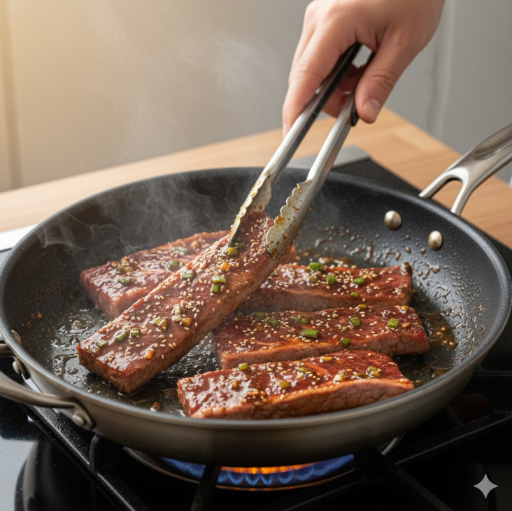 - 기름을 두르지 않아도 고기 자체에서 나오는 지방으로 충분